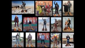 The Leonard Peltier advocacy work offers a complex example of how institutions transform solidarity-rooted practice while simultaneously revealing collaborative work’s mobilizing potential. Beginning in 2014, Rigo created an 18-foot bronze sculpture of Leonard Peltier – an Indigenous activist imprisoned since 1975 for convictions related to the deaths of two FBI agents on the Pine Ridge Reservation. Peltier consistently maintained his innocence, and his case became a symbol of Indigenous rights struggles and concerns about justice system bias. The sculpture emerged from sustained collaboration between Rigo and supporters including family members, activists, and the American Indian Movement who financed the project. During its transportation from Los Angeles to Washington D.C., the artist visited Pine Ridge Reservation, Standing Rock, and other significant sites, inviting public and supporters to photograph themselves standing on the statue’s feet (Figure 3). The act of standing on the feet and sharing the images can be read as a small ritual of alignment with the campaign.