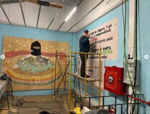 After following Rigo’s work across multiple contexts for six years, one pattern becomes undeniable: his practice is defined not by successes but by systematic encounter with structural limitations that no individual methodology can transcend. The trajectory of PEAI across different institutional contexts illustrates this dynamic. When the work appeared at Vienna’s Weltmuseum—a deeply institutional space—it prompted Rigo’s questioning: “What is Zapatismo doing here!?” The question registered his awareness that the installation also served the museum’s need to signal decolonial concern and openness to Indigenous movements, even as it offered a platform for Zapatista stories.This institutional contradiction became more apparent during my observation of the installation at ZDB-8 Marvila in Lisbon, where Rigo 23, Christian H., Santiago T. M., and Francisco Côrte collaborated on mounting the complex exhibition. The installation involved reconstructing elements of a Zapatista village street and house interior, requiring intensive collaborative work that mirrored the original community-based production process. At ZDB the gallery explicitly supports social movements and artistic practices that sit at the margins of national canons and funding structures, so the work’s political integrity seemed less compromised by the institutional frame.