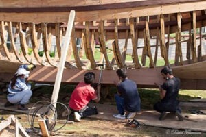 Rigo’s practice can be understood as a form of “accompaniment”:  a practice of staying with people and places over time, in which the shared process is already part of the work, even before any finished piece exists.  Only after watching him spend months learning traditional boat construction with Bailinha did I grasp that accompaniment is kinship-making articulated as method: the name he gives to the bonds that form through long-term, practical involvement rather than through a single project event. By kinship I mean ties that grow over years of shared labour and mutual obligation–from his alliances with former members of the Black Panther Party and supporters of Leonard Peltier, including family members, to enduring relationships with Zapatista communities and other collaborators. Unlike more punctual forms of collaborative, relational or dialogical art, these ties are built and maintained over years.  Projects emerge from sustained presence[14]:  a commitment that extends across his practice, from the recently concluded Leonard Peltier advocacy to current collaborations with residents of Câmara de Lobos in Madeira. This sustained presence is less a fixed protocol than the slow work of building trust through doing things together over time. If it has a method, it lies in repeated, situated actions that matter to the people involved, and that also leave their mark on Rigo himself.