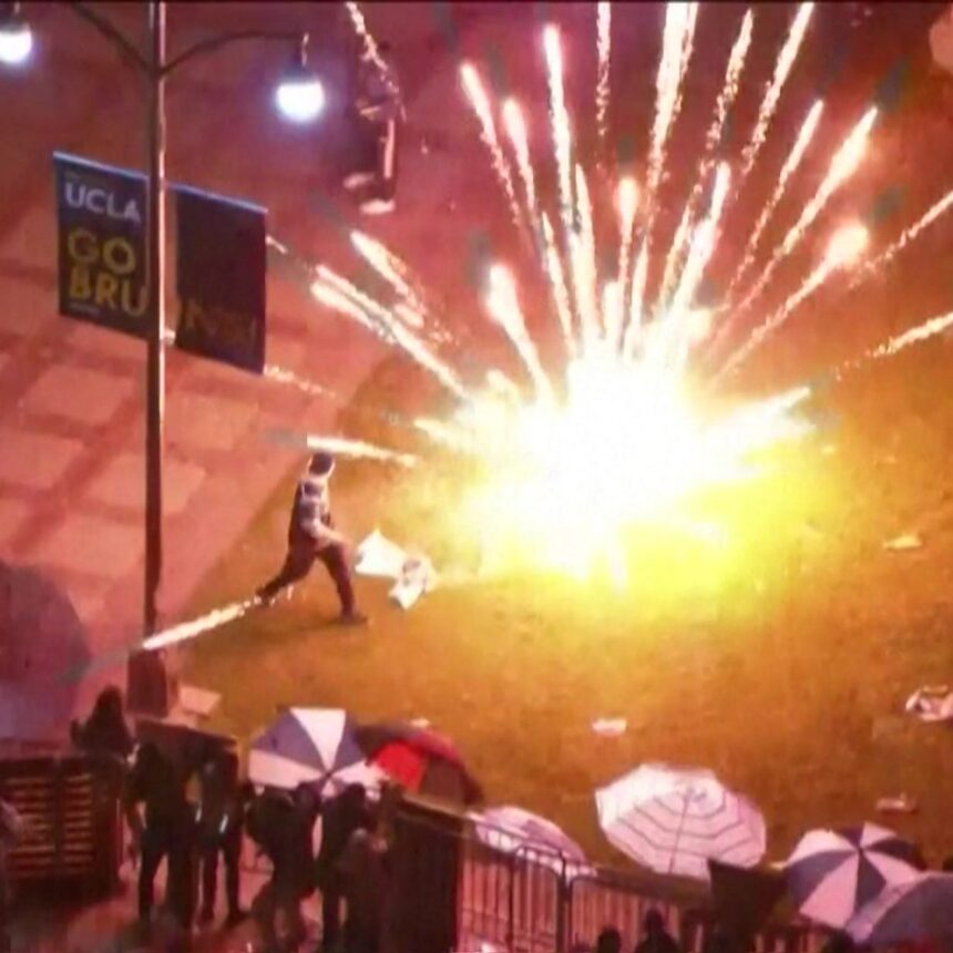 For video footage of the attacks see: “Counter-protesters attack UCLA pro-Palestinian camp,” BBC News (May 1, 2024)