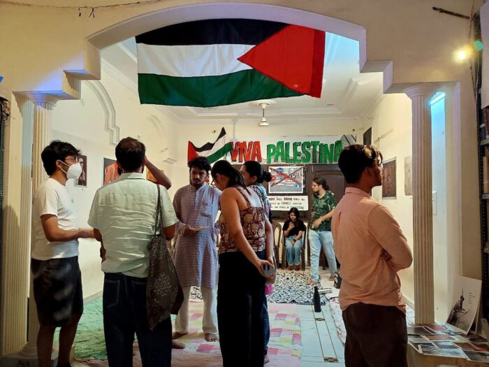 With platforms for creative expression shrinking and the art infrastructure crumbling, a novel development emerged in the city, driven by the undying enthusiasm of a new generation of artists and art students. Similar to the Chinese phenomenon of “apartment art” that arose in response to increased censorship and the lack of accessible galleries,[15] private residential spaces were converted into temporary exhibition halls and film screening venues. Often referred to as “open studios” and scattered across the city and its margins, these spaces formed a parallel—if not confrontational—infrastructure for art, fostering micro-communities of artists. One such space, Studio Montage, run by the Progressive Artists’ League (PAL), stands out from other similar initiatives because of the collective’s principled rejection of mainstream art institutions and their neoliberal funding structures. Crowd-funded and known for holding exhibitions in working-class neighborhoods, as well as for its vocal anti-right-wing stance and recent active participation in the Boycott, Divestment, and Sanctions (BDS) campaign against Israel’s genocide of Palestinians, PAL recently faced a police crackdown and was forced to shift its residential space. [16]