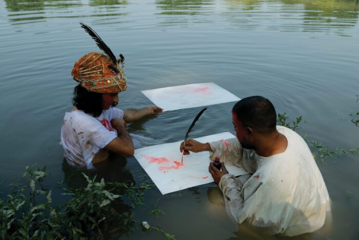 As the historically liberal and secular imaginary of the Indian art world has been shattered by the fascistic forces gathering momentum from the heartland of India, the southern state of Kerala with its leftist and multicultural legacy has risen to a position of cultural prominence. This is evidenced, for instance, by the national and international reception of the Kochi-Muziris Biennale (KMB), launched just two years before Modi’s ascension to power.[17] Kerala, long known for its human development indices comparable to those of developed countries in the West,[18] is also remarkable for its mostly accountable, inclusive, and dynamic public institutions, including state academies of art, literature, film, and theater. However, it is worth noting that the launch of KMB was a radical departure from this institutional tradition, which led to protests and the alienation of a significant number of Malayali artists and intellectuals.[19] During the KMB’s most recent edition in 2023, the organizers’ consistent evasion of due process and accountability culminated in international embarrassment,[20] as the event was postponed at the last moment following local laborers and contractors’ non-cooperation in protest.[21]