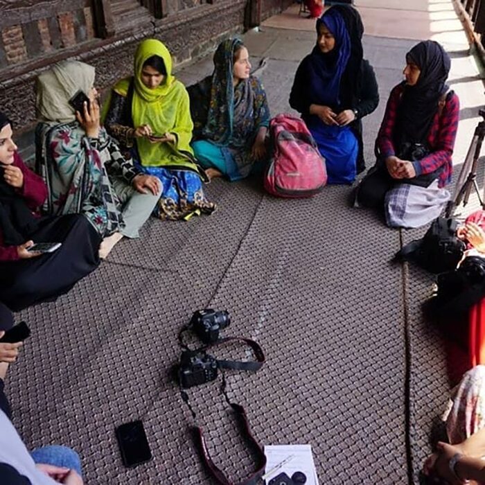 [28] Founded by three women photographers—Nawal Ali, Ufaq Fatima, and Zainab Mufti—Her Pixel Story seeks to create a platform for women and non-binary photographers, by conducting photo walks, collaborative projects, workshops, and reading sessions. The collective was formed as a response to the otherwise critically acclaimed photo book Witness: Kashmir 1986-2016 (edited by Sanjay Kak in 2017), which showcased the works of nine Kashmiri photographers, all of whom were men. Another important Kashmiri woman photographer in this context is Pulitzer Prize winner Sanna Irshad Mattoo (discussed in The Caravan story, “Playing to the Gallery”, mentioned above).